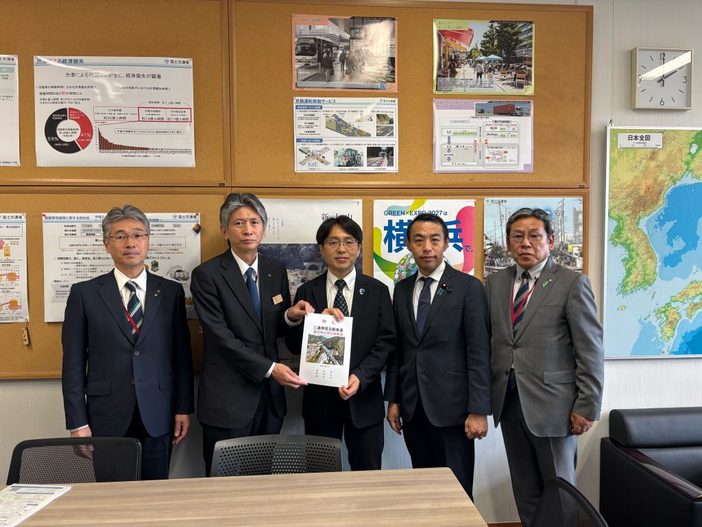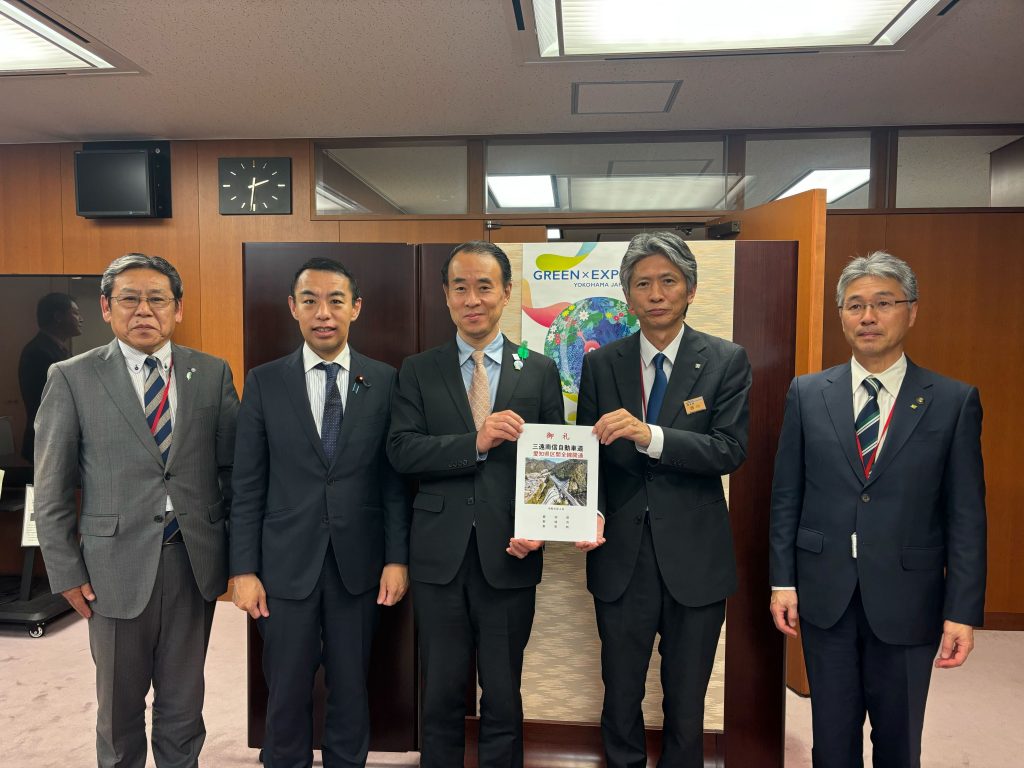 新城市長、東栄町長をはじめ関係者の皆様とともに、国土交通省へ、副大臣をはじめ担当局の皆さまに、三遠南信自動車道 愛知県区間の全線開通について御礼と、併せて北設井桁道路整備促進を、提案してまいりました。