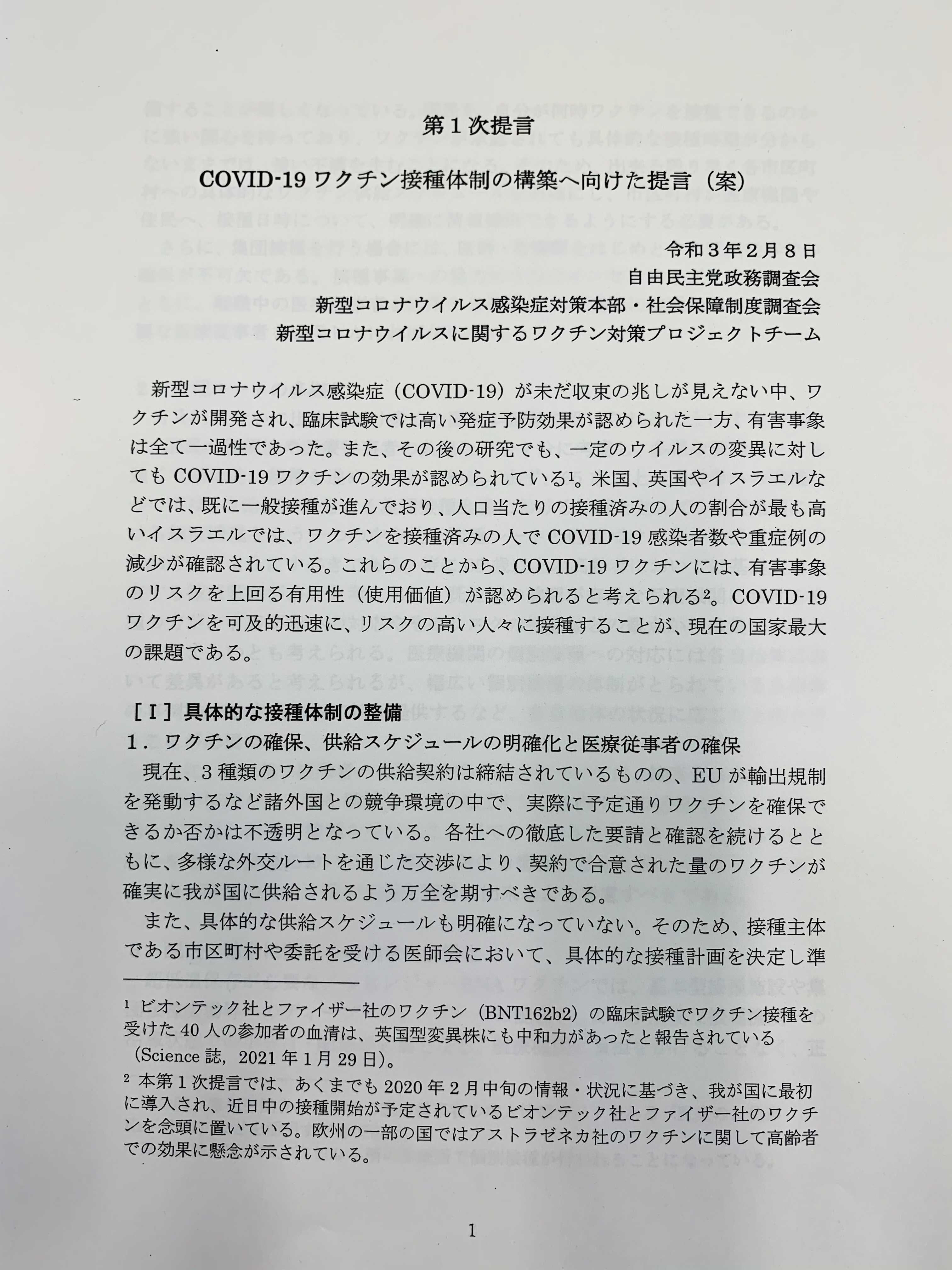 ●また、昨日は、ワクチンPTでは、以前お見せしたワクチン提言が、更に進化して、新たな提言に生まれ変わりつつあります。