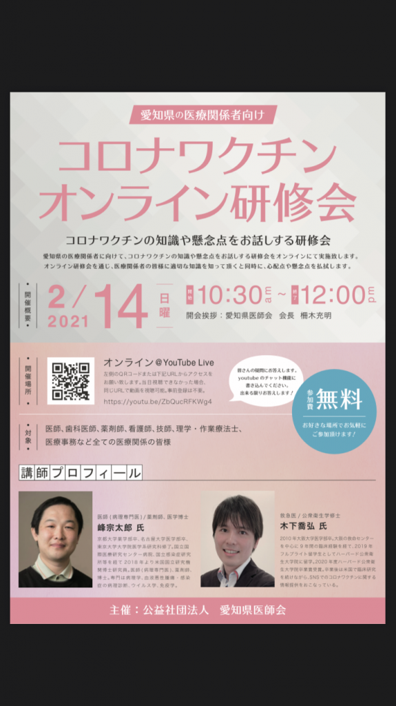 コロナウィルスオンラインウェビナー、現在こちらのリンクで配信中です。