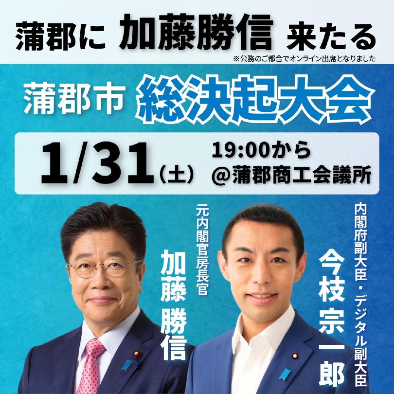 元内閣官房長官 加藤勝信さんがオンライン参加してくださいませ。